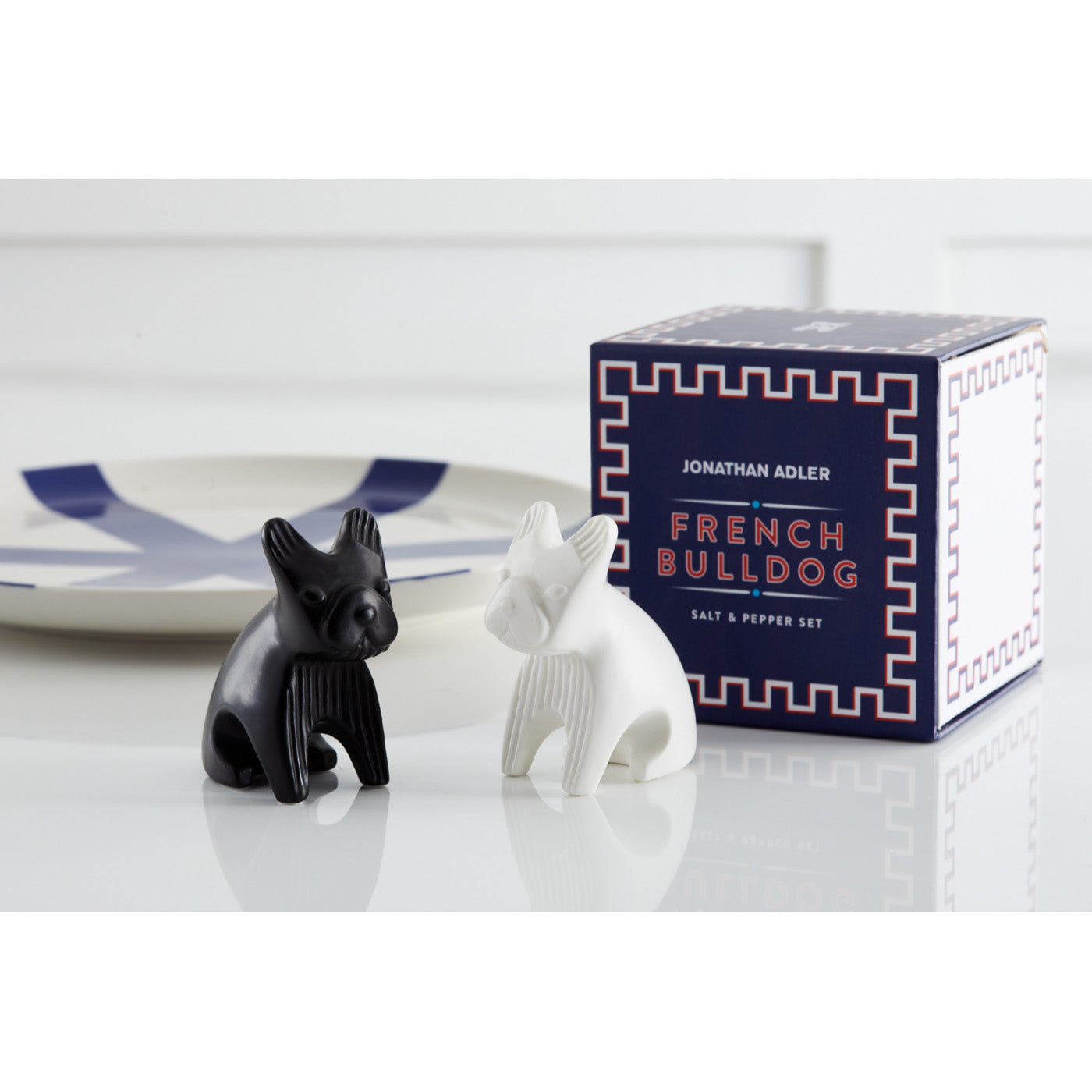 Don't forget a dash of mid-century modernism at mealtime. Featuring one of our classic Menagerie shapes, our French Bulldog Salt and Pepper Set features two posh pups—one black, one white—crafted from high-fired porcelain.