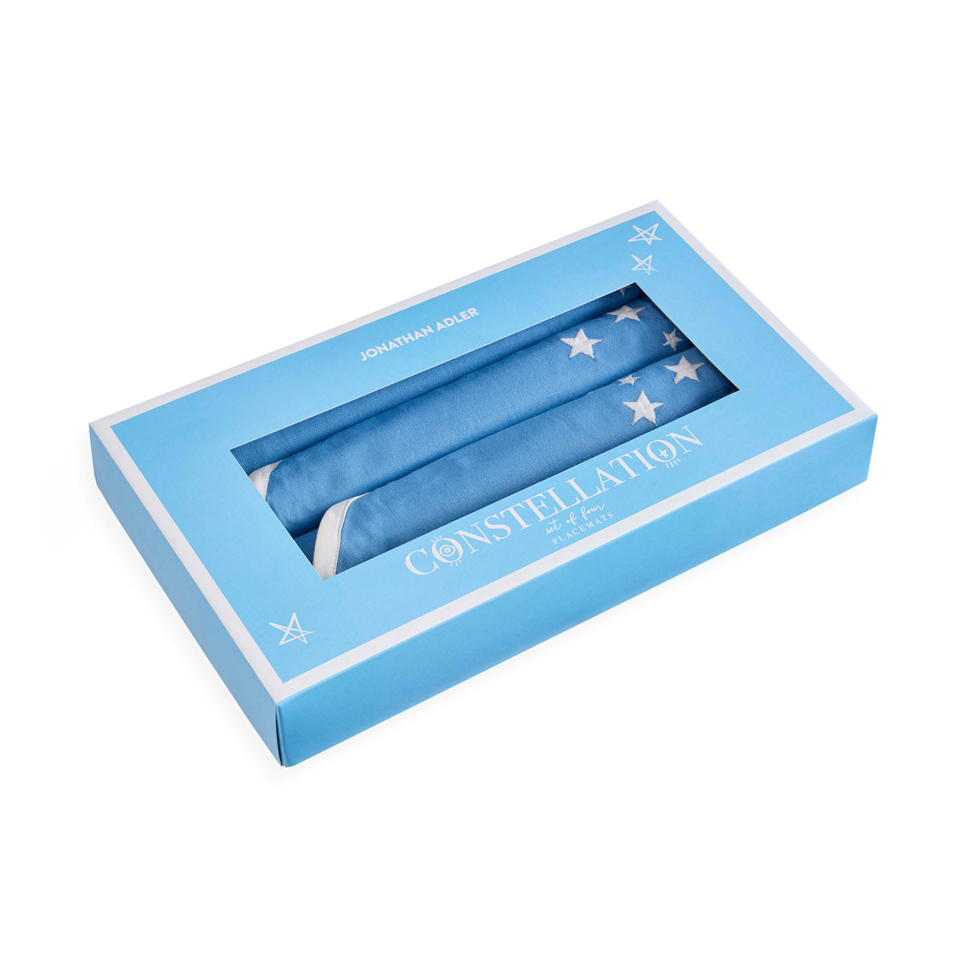 Featuring a satin stitch embroidery on luxe linen with a contrast flange for flair, our Constellation placemats as the stars of any place setting. Pair with our Druggist dinnerware for an extra dreamy tablescape.