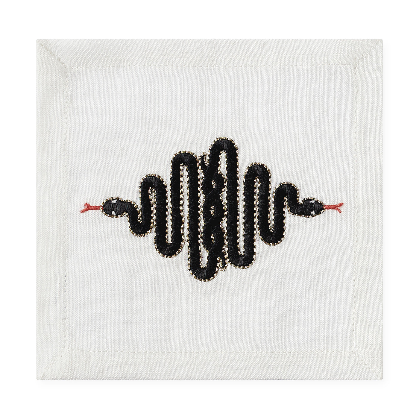 The perfect pairing with cocktails and canapés, these beauties even elevate basic bar nuts. Embroidered on luxe linen, our intricately intertwined duo of slithering serpents brings a bite to your night.