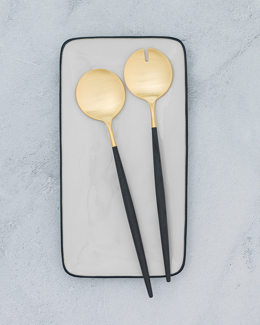 Salad servers from top quality 18/10 stainless steel and resin handle, hand made in Portugal by Cutipol.