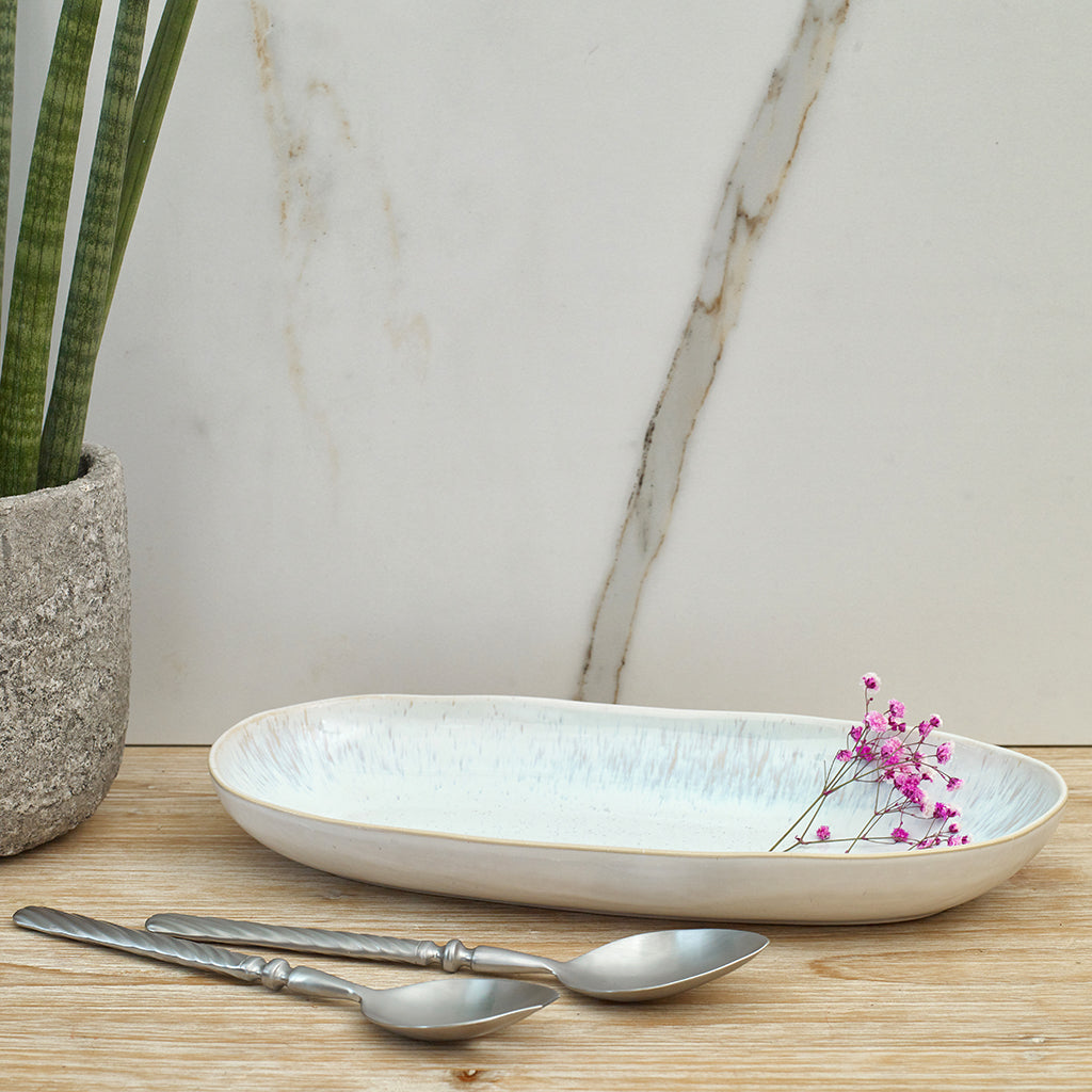 Set of 2 pieces of high quality matt stainless steel servers handmade in Portugal by craftsmen with more than a hundred years of history.