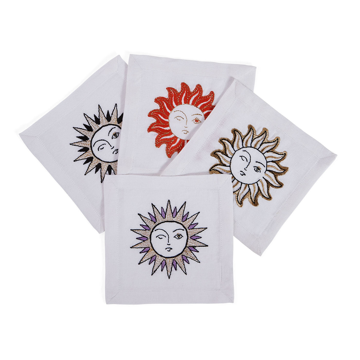 The perfect pairing with cocktails and canapés, these beauties even elevate basic bar nuts. Embroidered on luxe linen, our four unique Muse suns are a wink to Gatsby and gilded age glamour.